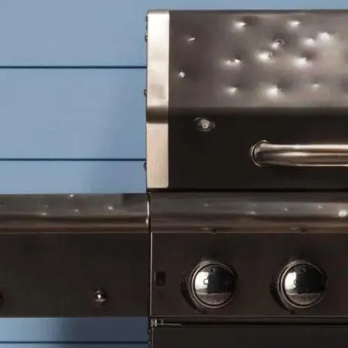 Dramatization: Grill was not actually damaged by hail, but made to show typical hail damage for purposes of advertising.